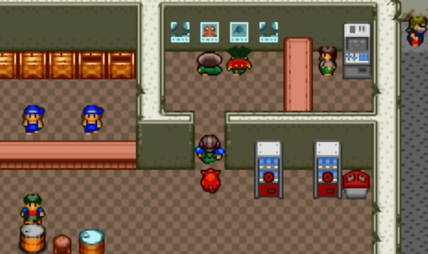 随后径直向上行进,抵达码头镇。走进人类工具店,购置探雷器与修理箱(这两样是必须购买的,后续剧情会用到),至于人类装备,买个喷火器就行。接着进入上方的建筑。