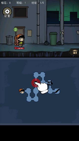 8、遭遇敌人时,可开启背包,运用武器展开战斗。角色头顶数字代表当前剩余体力,每次使用道具都会消耗体力,体力降至0便无法战斗,随即进入敌人攻击回合。