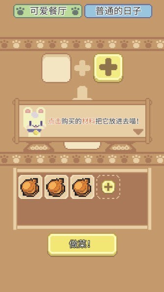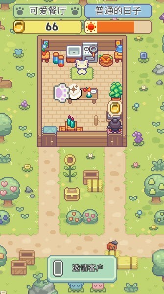 喵味餐厅版,是一款超好玩的像素风格餐厅模拟经营游戏。它以独特的像素画风,构建出风格各异的餐厅环境,等你来开启经营管理之旅。在这里,丰富多样的经营玩法任你尝试,各种装饰物品能自由搭配组合,随心改建属于你的像素餐厅环境。游戏食谱极为丰富,依照食谱就能制作出形形色色的美食。订单完成起来轻松无压力,你还能不断升级餐厅等级,招聘更多员工助力餐厅管理。在游戏中,你将沉浸式享受温馨治愈的经营过程,轻松体验更多精彩内容。清新的画风设计,趣味十足的经营体验,感兴趣的玩家可千万不要错过!