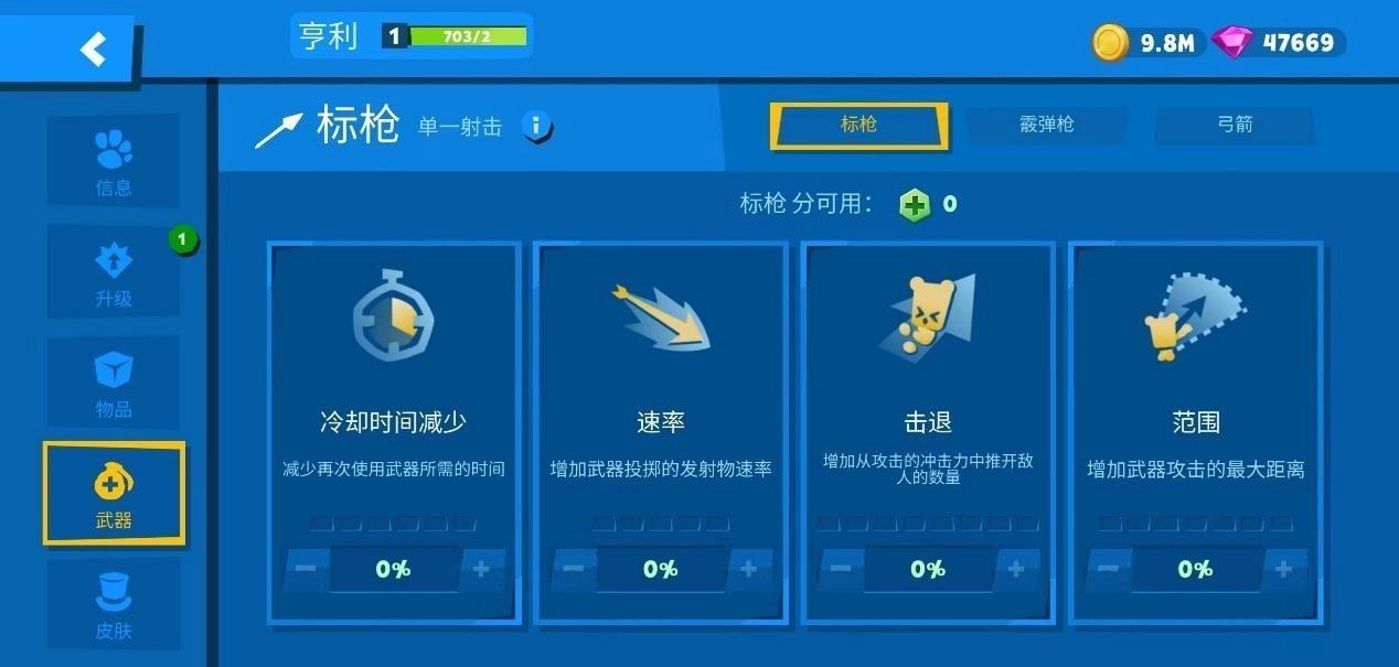 推荐的加分顺序为:冷却时间缩减→范围→速率→击退