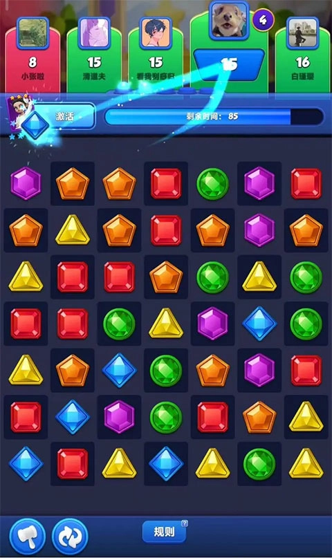 宝石大乱斗里的丛林乱斗活动,无疑是最惊险刺激的PVP玩法。该活动共三个回合,每回合都要求玩家在限定步数内达到“及格线”,方能晋级下一回合。最终仅有2名幸存者能够获取丰厚奖励。