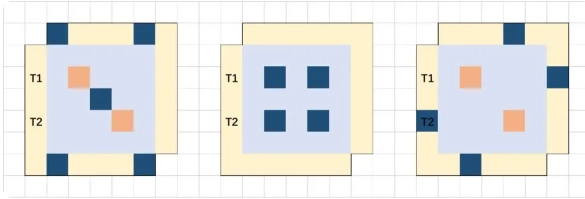 之后T2去捡补给包,T1解决掉M1后,T1和T2分别躲到上面和下面的中间位置,然后其中一队经过中间的医疗包,从地图右边接近boss(如下图所示)。