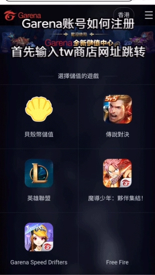 -首先输入TW商店网址https://shop.garena.tw/new/跳转