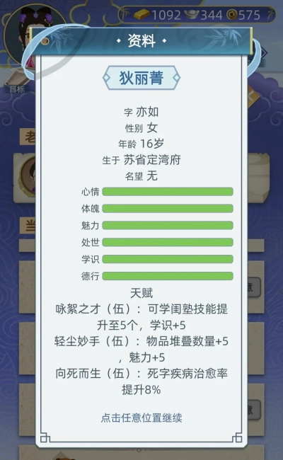 古代人生女线闺塾登峰造极培养心得和题目答案