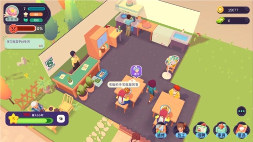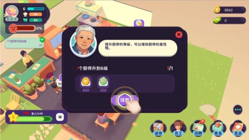3、玩家能够通过招募新员工以及培训老员工,来增强餐厅的综合实力,使餐厅在竞争白热化的市场里崭露头角。