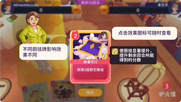 另外还有一点要注意!炉火值不会延续到下一回合,必须凭借厨技战胜对方的厨技!