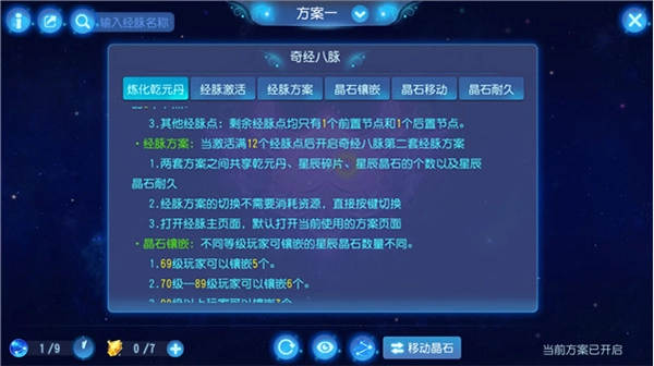3、在《梦幻西游》中,玩家只要激活满12个经脉点,就能开启奇经八脉的第二套方案。并且,这两套方案会共享乾元丹、星辰碎片、星辰晶石的个数以及星辰晶石的耐久。每次进行方案切换时,均无需消耗资源。