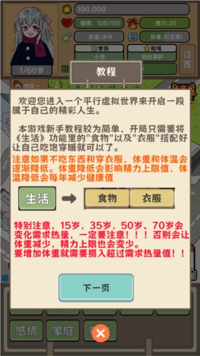 需注意,若不进食与穿衣,体重和体温会逐步下降。体重下降会对精力上限数值产生影响,而体温下降则会致使每年健康数值有所减少。