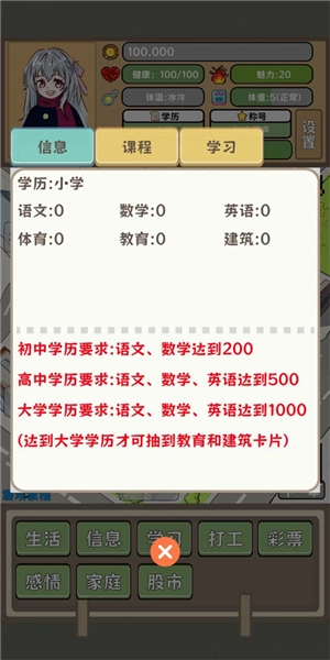 4、接下来便是《学习》这个提升学历的板块,部分玩法要求玩家达到相应学历才能继续推进,各位可要多多学习呀!