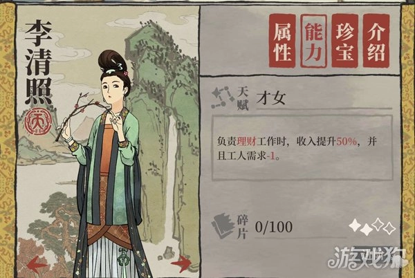 2、李清照,理财界的翘楚,能让收入提升50%。在游戏里,铜钱的积累至关重要,而她可以为玩家创造颇为可观的经济收益。