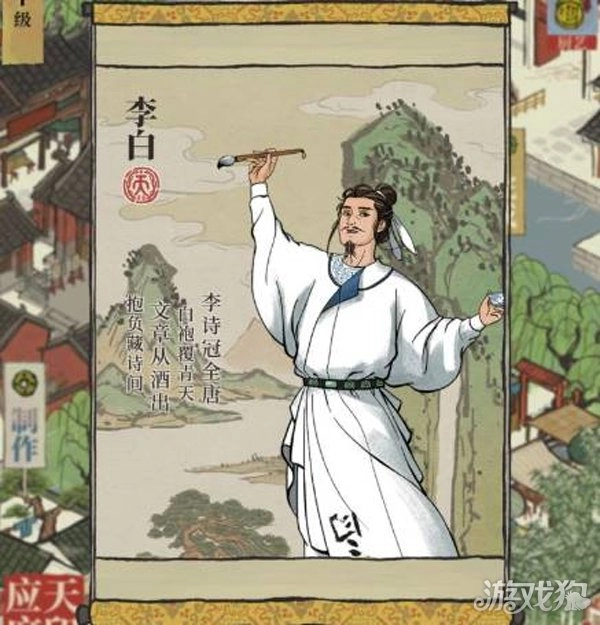 4、李白:其天赋属性颇为全面,探险属性更是出类拔萃,堪称探险领域的顶级角色。在游戏前期,可与徐霞客携手开展探险活动;到了中后期,即便留在应天府,也能够保障资源的生产。