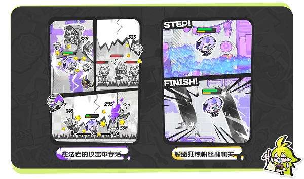 除此之外,游戏里还设置了不少特殊关卡。像充满危险的生存关卡,当你踏入金字塔的瞬间,拉美西斯的试炼便会开启,你得在法老权杖散发的威光下灵活闪避,坚持活到最后。还有令人心跳加速的躲避关卡,当霓虹的狂热粉丝追随着爱豆的光芒向你们涌来,快拼尽全力带着爱豆逃离吧~