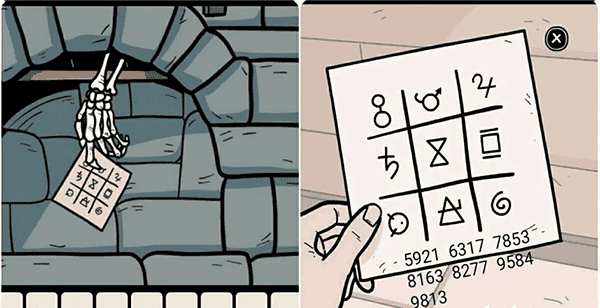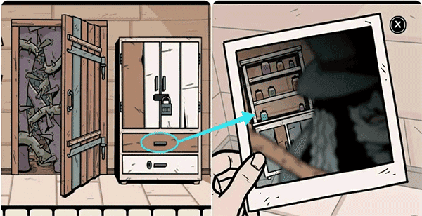 5、走到壁炉旁,揭开画框上的白布,随即进入剧情。紧接着,用对讲机对着壁炉操作,会得到一张纸条。仔细观察纸条上的符号,再与收音机的频道数字相结合,就能得出由四个符号组成的密码。