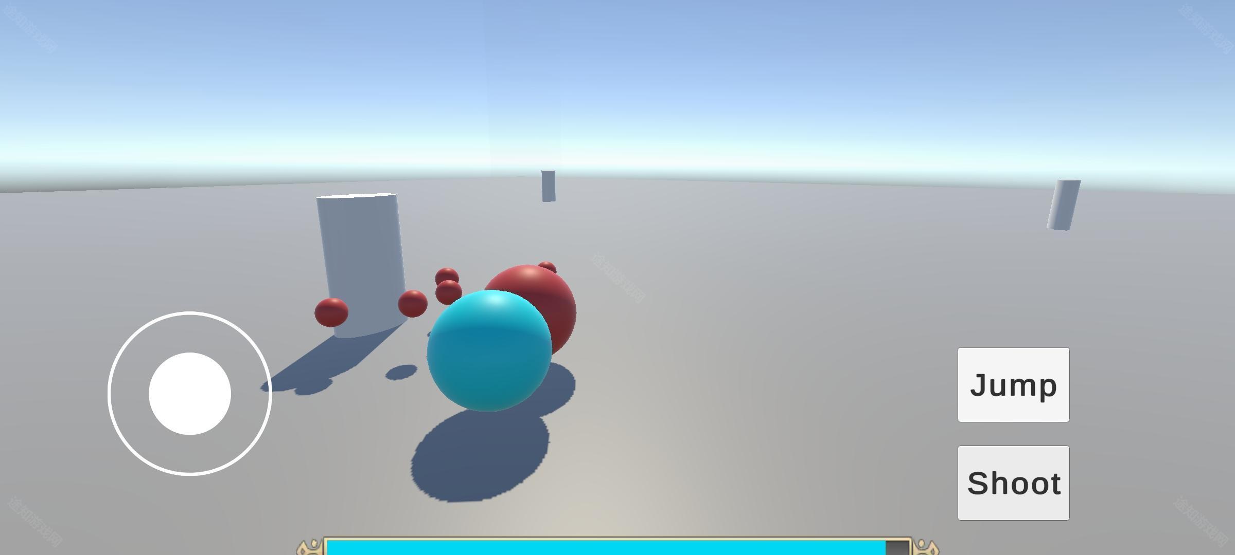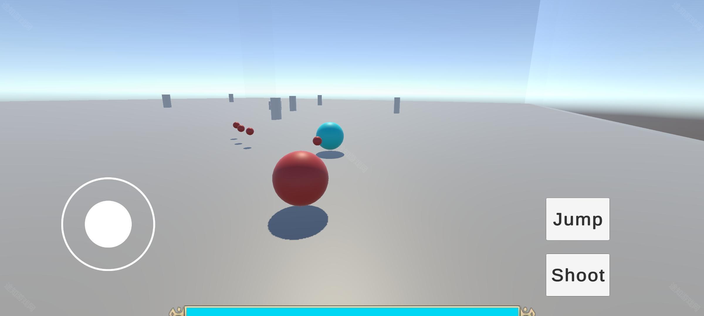 移动操控:在屏幕左侧滑动虚拟摇杆来改变方向,点击【Jump】实现跳跃以越过障碍,点击【Shoot】发射能量波。