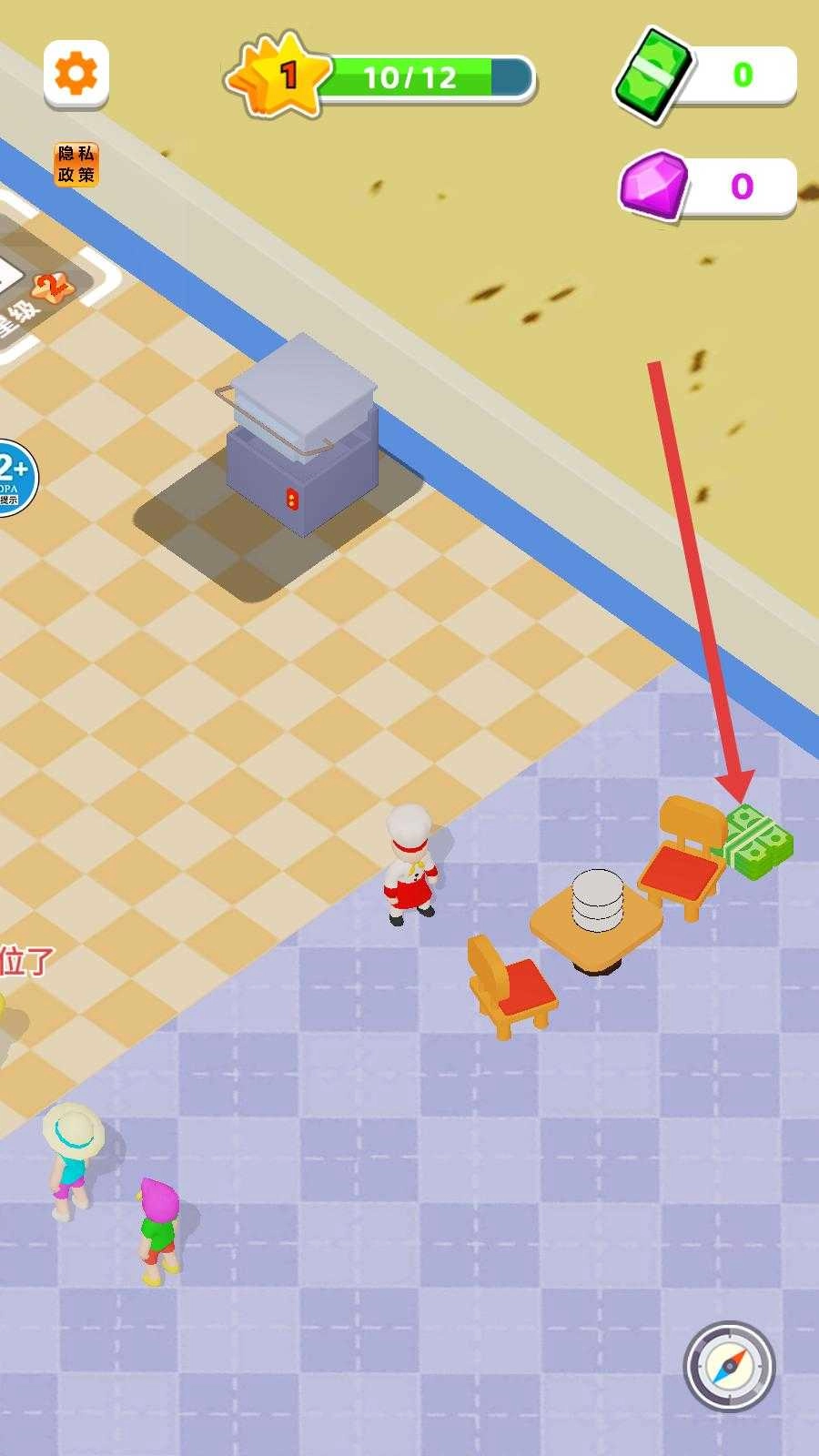 4、在经营过程中,还可从店铺场景里椅子旁等位置获取资金,积累更多资金,以便用于后续店铺升级等操作。