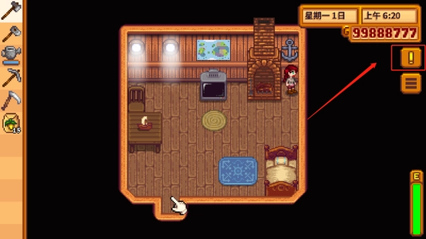 7、走出房间后可以在附近开始开荒,左侧是工具栏