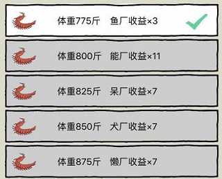 此外,皮皮虾是最先解锁的品种,然而在挑战中的加成却是针对全品种的!因此,除了喂养高级品种之外,一旦手头有闲钱就去喂养皮皮虾,这肯定是个不错的选择。