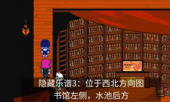 隐匿乐谱3:此乐谱所处位置为西北方向图书馆的左侧,水池的后方。