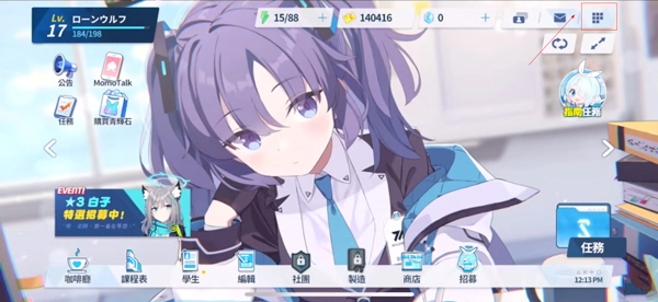 想知道蔚蓝档案如何切换成中文显示吗?首先启动游戏,然后找到界面右上角的小方块图标并点击,这样就能打开菜单选项了。