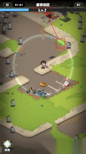 进入游戏场景后,需借助转盘装置操控人物行动轨迹。人物周身存在一个白色光圈,此为其感知范围,当丧尸进入该光圈区域时,人物便会触发自动攻击机制。