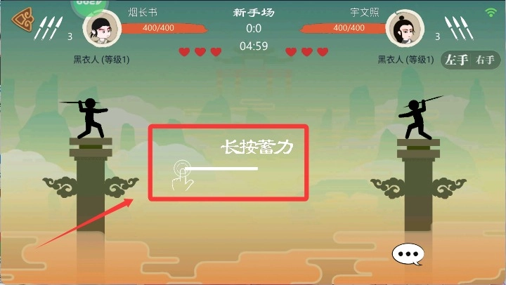 开始游戏后长按蓄力扔出标枪攻击对手。