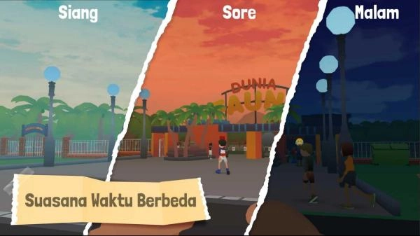 呈现了“Suasana Waktu Berbeda(不同时间的氛围)”这一主题,展现了动物园在“Siang(白天)”“Sore(傍晚)”“Malam(夜晚)”三个不同时段下的场景。