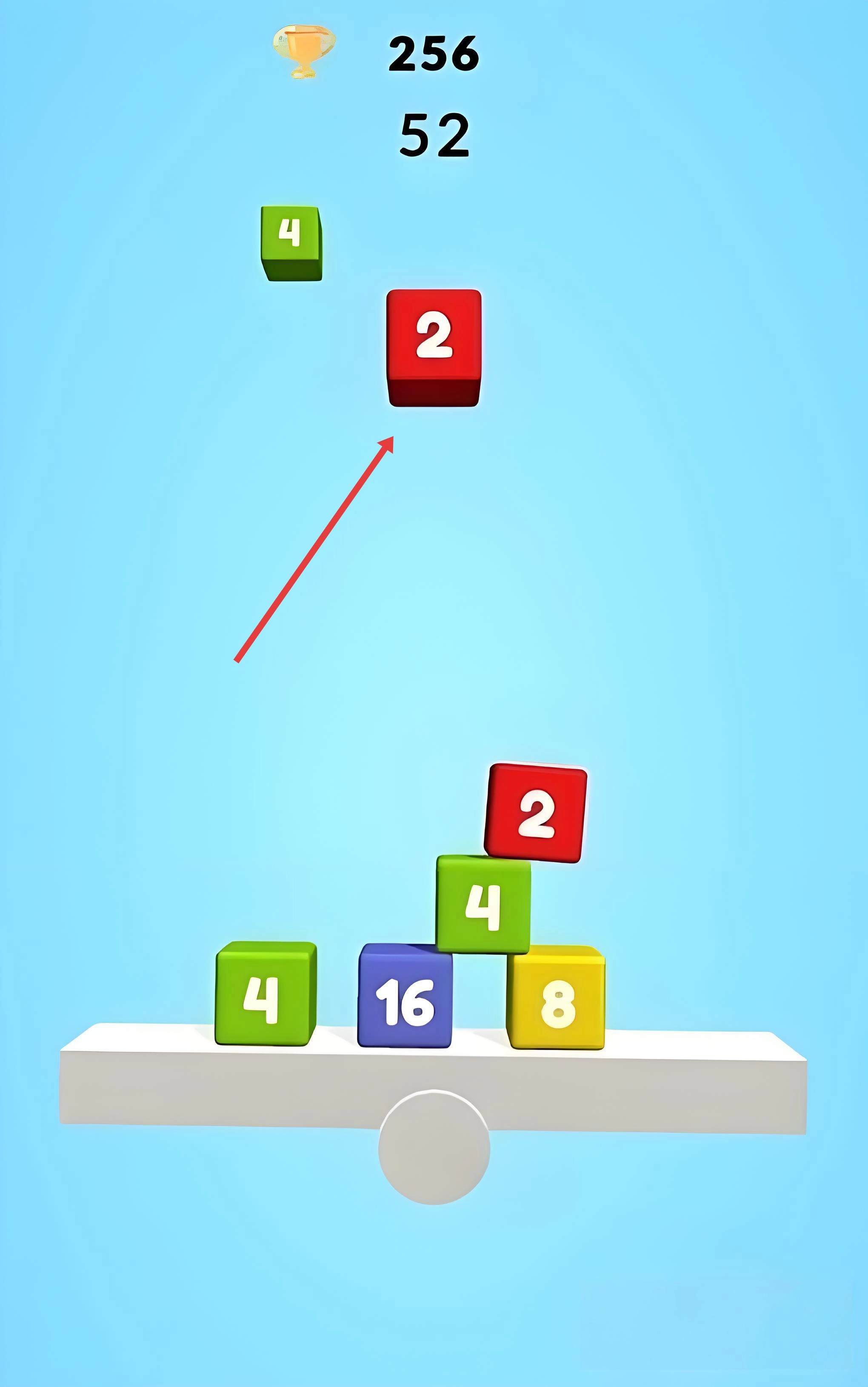 相同数字方块叠放时会自动合成更大数字,不同数字需巧妙布局,需留意天平倾斜程度,防止因重心偏离引发失衡。
