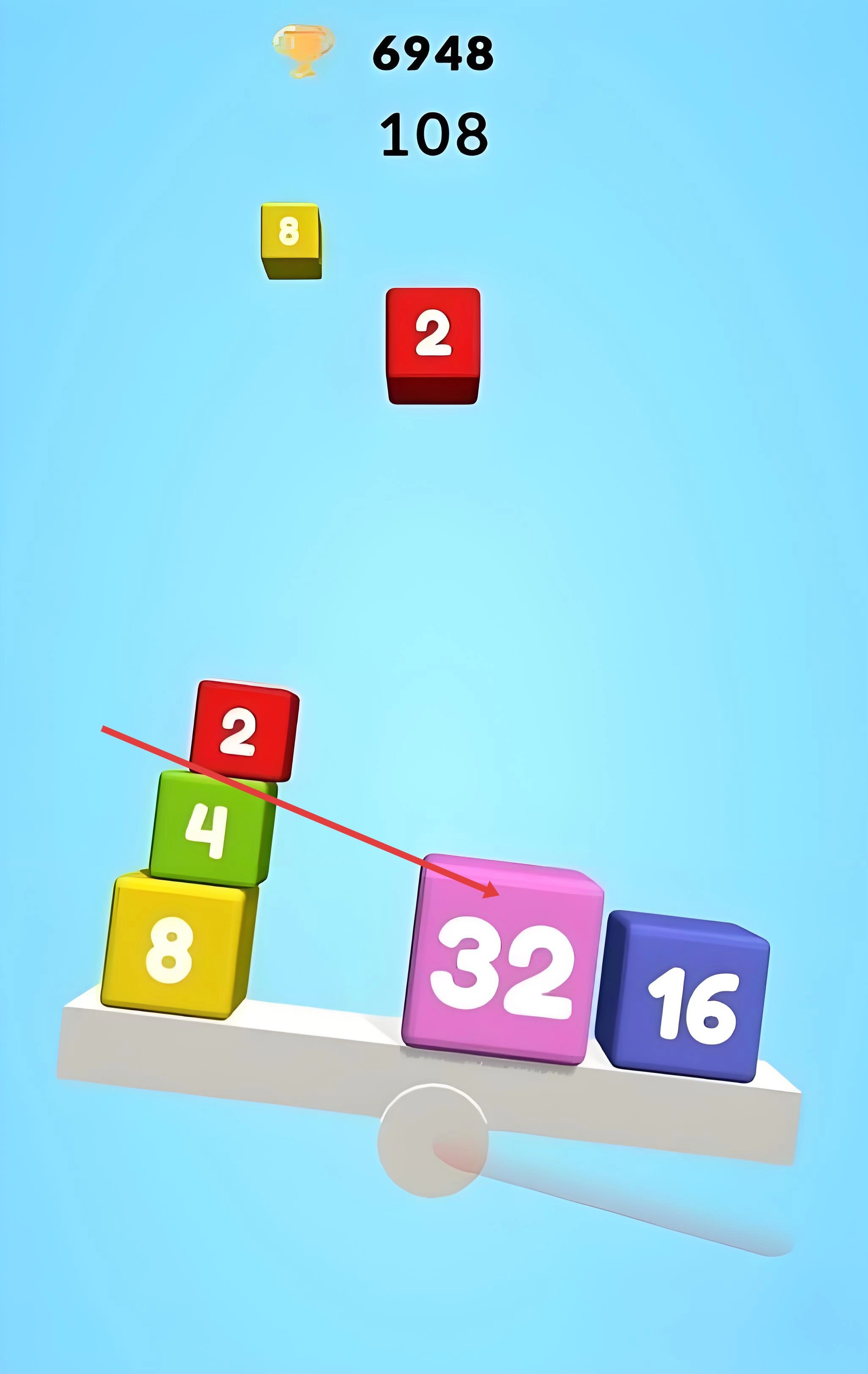 当相同数字方块堆叠时会自动合并成更大数字,不同数字则需合理摆放,时刻关注天平倾斜角度,避免因重心偏移导致失衡。