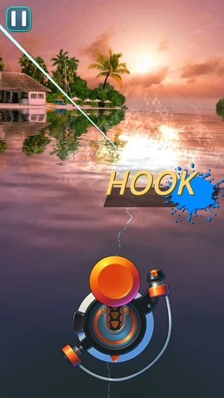 稍后出现的“Hook”标志,是提示鱼儿上钩的信号,一旦看到这个标志,请在3秒内拉动按钮。