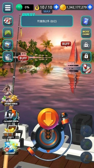 点击屏幕上的按钮就能对鱼造成伤害,使其无法逃脱,这样你就能轻松地把鱼钓上来了,操作非常简单。