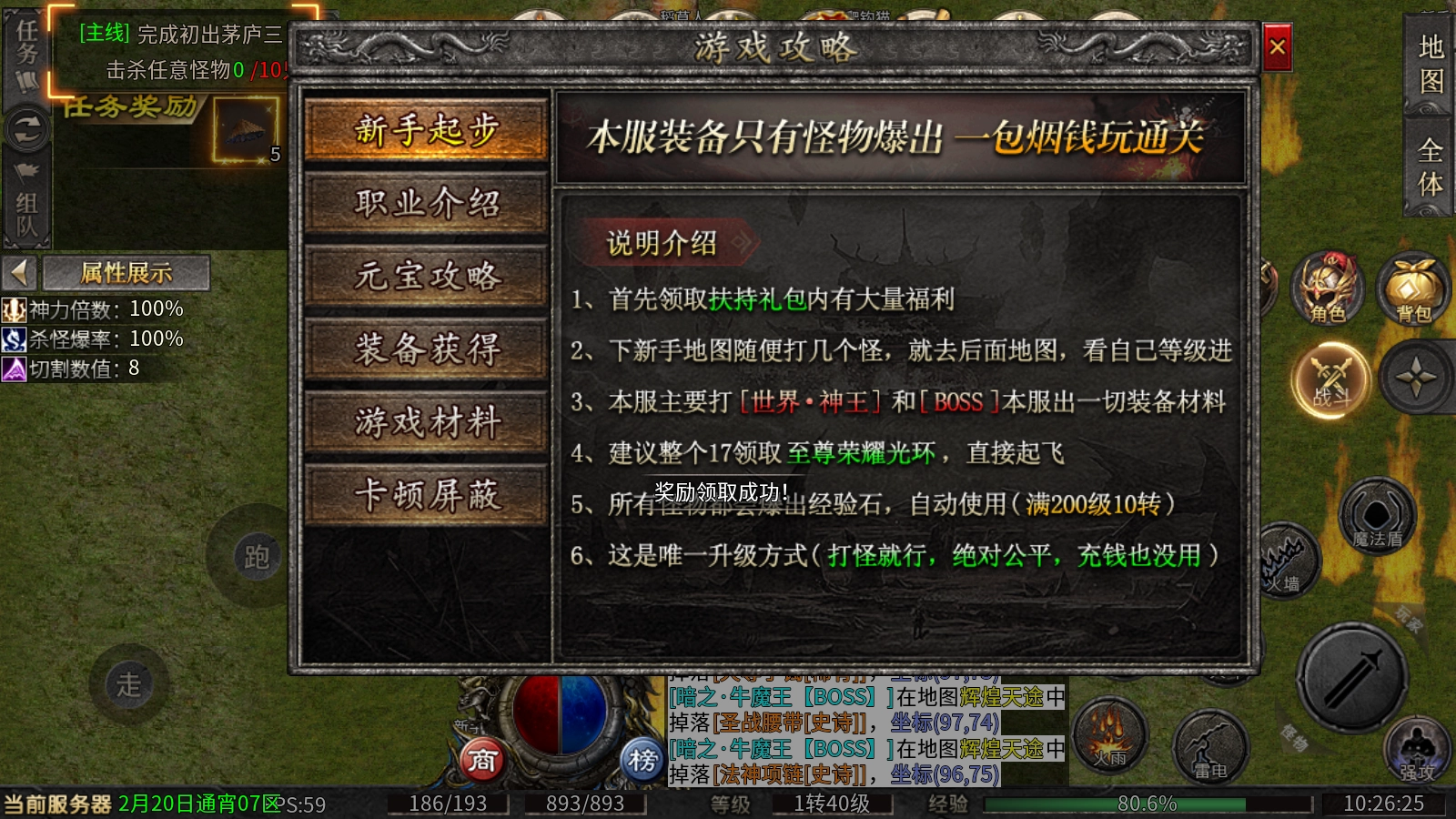 这是唯一的升级途径(只需打怪即可,完全公平,充值也无法提升)。