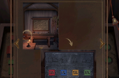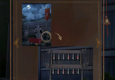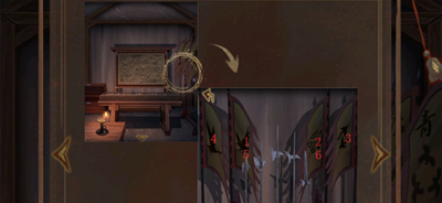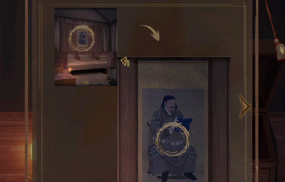 接下来点击场景墙上的挂画,查看腰带的图案顺序:黑黑白黑白白白。