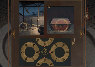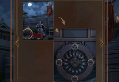 按照毂轮线索输入图中的密码,打开马车后就能拿到祭祀用的花猪头,还能查看里面的军礼记。