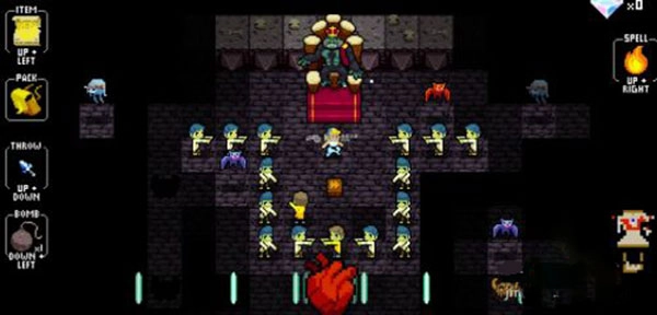 在每个关卡里,我们都能拿到至少一件武器来防身,地板上每次只能移动一格,碰到敌人时可以朝敌人方向移动并对其造成伤害。要是音乐停了,就意味着要进入下一层地牢了。