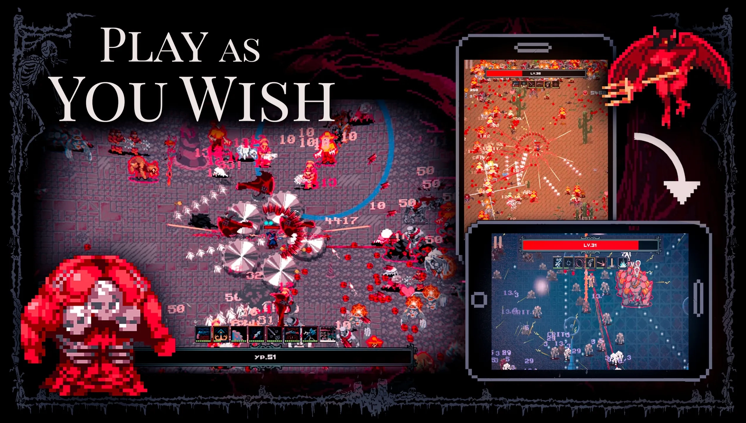 - 直面海量敌人:与成群结队的敌人展开战斗,屏幕上可同时呈现多达1000个敌人,营造出激烈且混乱的交战氛围。