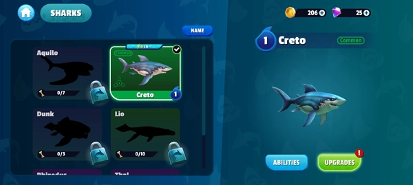 可以逐步解锁更多凶悍的水下掠食者:灰鲭鲨、锤头鲨、虎鲨以及所向披靡的大白鲨!