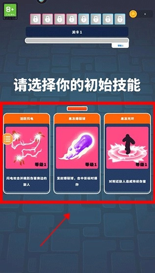 游戏开局时,你能挑选一个初始技能,之后每提升一级就会解锁一项新技能。需要留意的是,重复选择相同技能不会占用额外的技能栏位,所以得合理规划技能的选取。