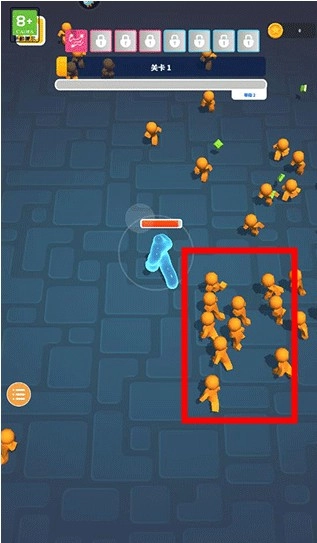 要是敌人把果冻人围住了,一发生碰撞就会让血量下降。所以得一直保持警觉,别让敌人把自己包围了。