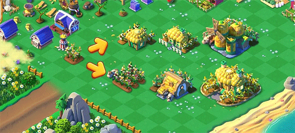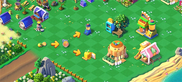 采集是合成类游戏里不可或缺的重要环节,游戏中大部分系列物品都得依靠引导居民采集才能获取。这意味着玩家每天需要进行大量的采集操作,为了减轻玩家的操作负担,我们特意加入了持续采集功能——开启该功能后,居民就会一直采集同一种物品,直到体力耗尽为止。