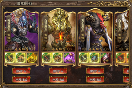消耗指定品阶的魔盒即可挑战对应的魔盒首领,品阶越高,可挑战的首领等级也越高,相应的奖励自然也更为丰厚。