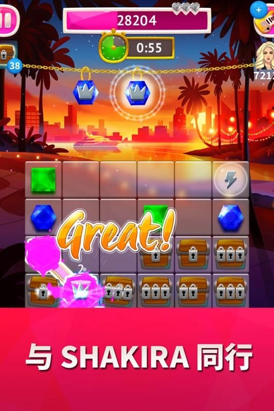 多种组合消除玩法,绚烂的光效搭配夏奇拉的动感热曲,为你打造一场精彩的视听盛宴。