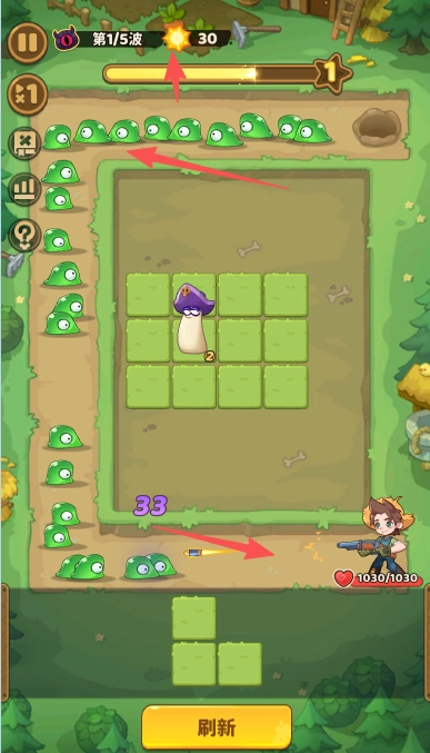 尝试在5个波次里,持续建造更多植物,助力你击退这些入侵庄园的怪物。
