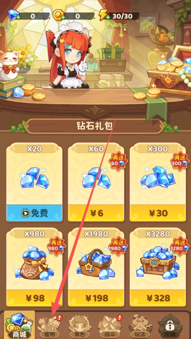 点击游戏页面下方的植物选项。