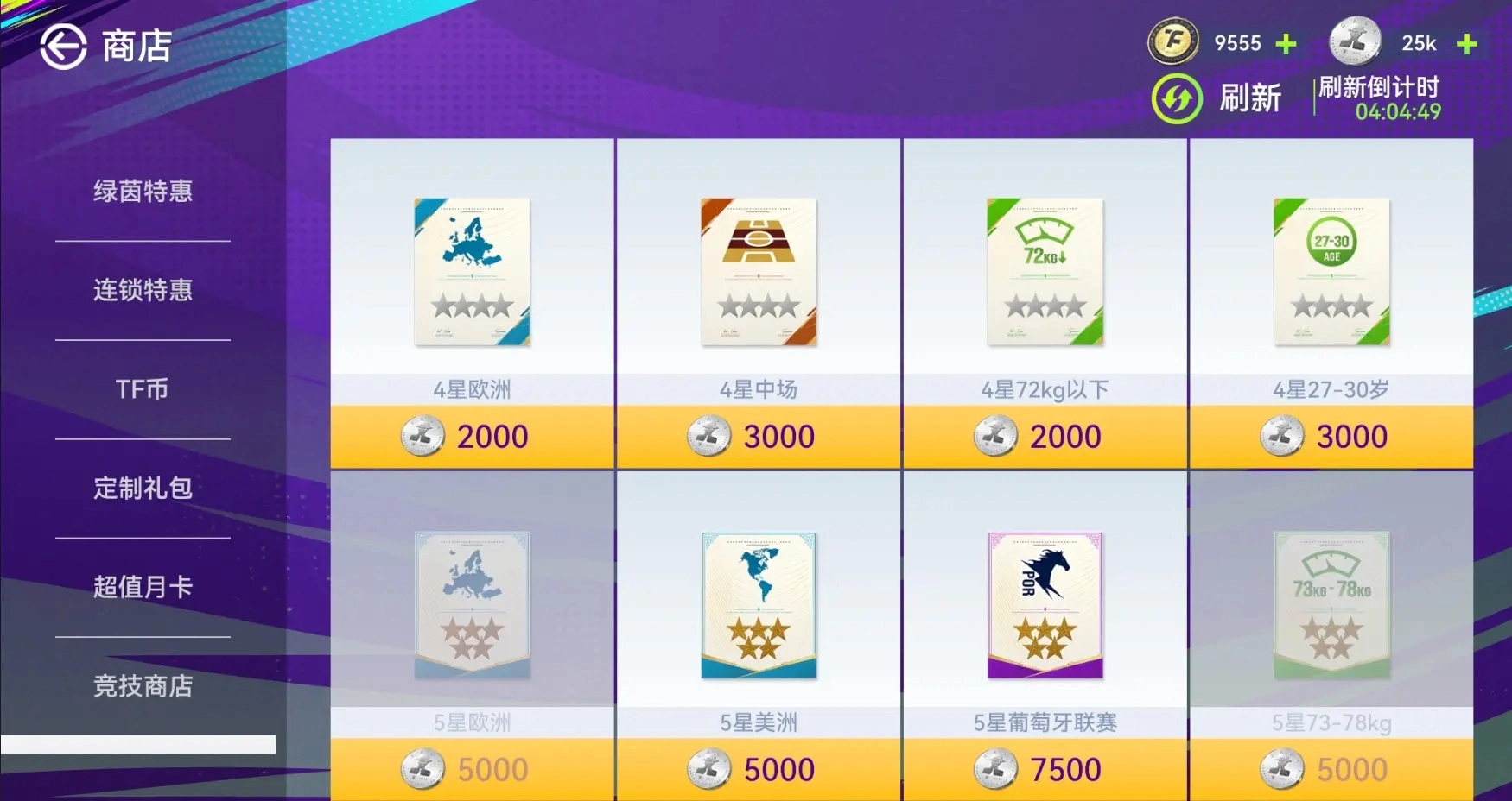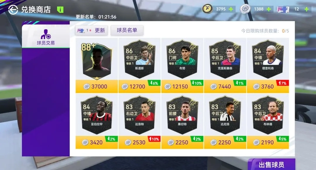 商店限时更新本赛季黑卡,球员可直接用转会币购买。商店支持手动刷新,每日首次刷新免费,第2至3次刷新每次需消耗1张刷新券,第4至5次每次需2张刷新券,从第6次起每次需3张刷新券,刷新次数及消耗规则将于次日0点重置。温馨提示:当前展示的球员名单仅包含商店可购球员及其对应价格,此处无法完成购买操作,需在刷新出的球员列表中进行选购。
