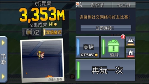 飞行途中若出现感叹号,就得提高警惕了——前方会有危险飞行物袭来,务必及时做好躲避准备。游戏结束后,系统会展示你收集到的成果以及飞行的总距离。
