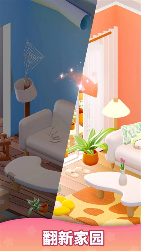 免费装饰机制:当你把两个相同的物品合并到一起,就能得到相应工具,这些工具可用于解锁并升级每件家具、每个房间角落,还能帮你翻新和粉刷自己的房子或豪宅。