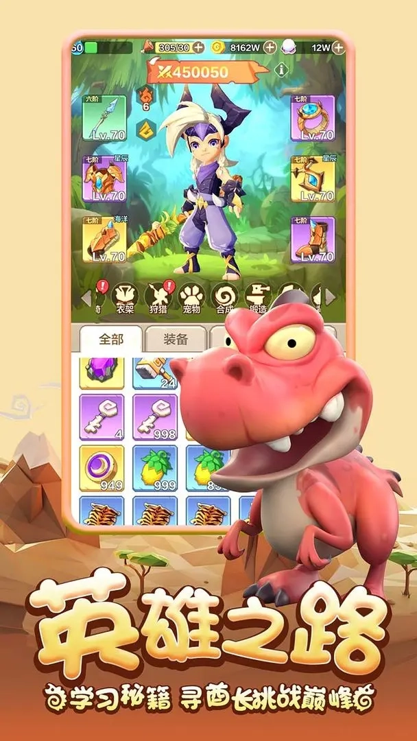 《勇者养成记》是一款卡通风格的休闲割草射击游戏。当你从睡梦中醒来,会发现自己穿越到了蛮荒时代——这里没有先进的科技,只有原始的石器工具,以及凶猛残暴的恐龙。在游戏里,你将化身勇者开启一段充满惊险的冒险旅程。
