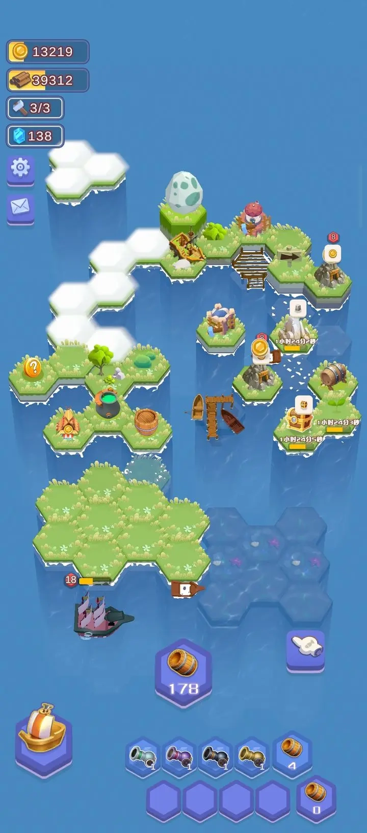 这是一款操作简单的模拟经营游戏,玩家需要持续探索未知岛屿来发展壮大自己的船队。随着关卡逐步深入,船队规模会日益扩大,但未知岛屿潜藏的危险也会不断升级。游戏全程仅需点击未知岛屿区域就能开启体验,探索过程充满随机性,可能收获财富也可能遭遇危机,无论哪种情况都能让你真切感受航海的惊险刺激。