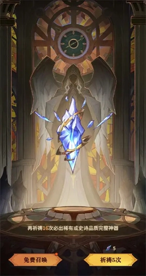 这里是抽取传说神器的区域。建议在至少能进行100次召唤时再去抽取,这样可以获得30个传奇神器碎片的奖励。