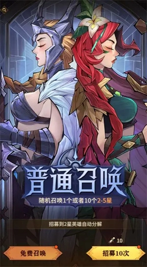 普通召唤能召唤出2到5星的英雄,召唤券获取难度较低,因此建议在有奖励活动的时候使用更为合适。